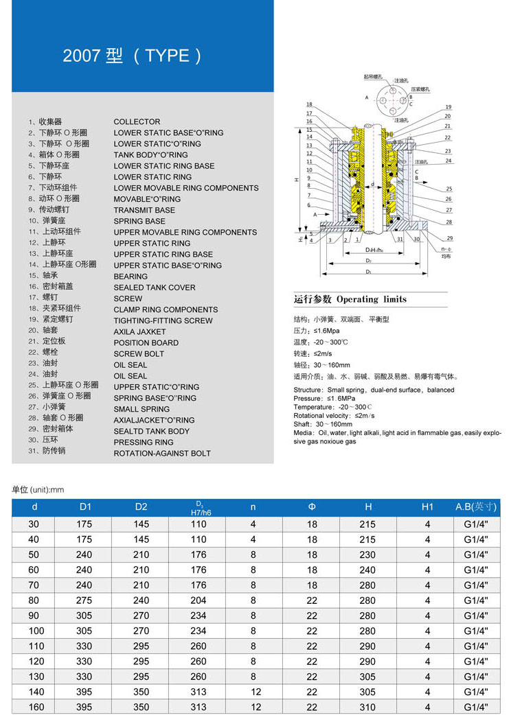 • 型號(hào):???釜用機(jī)械密封 2007型 (TYPE)