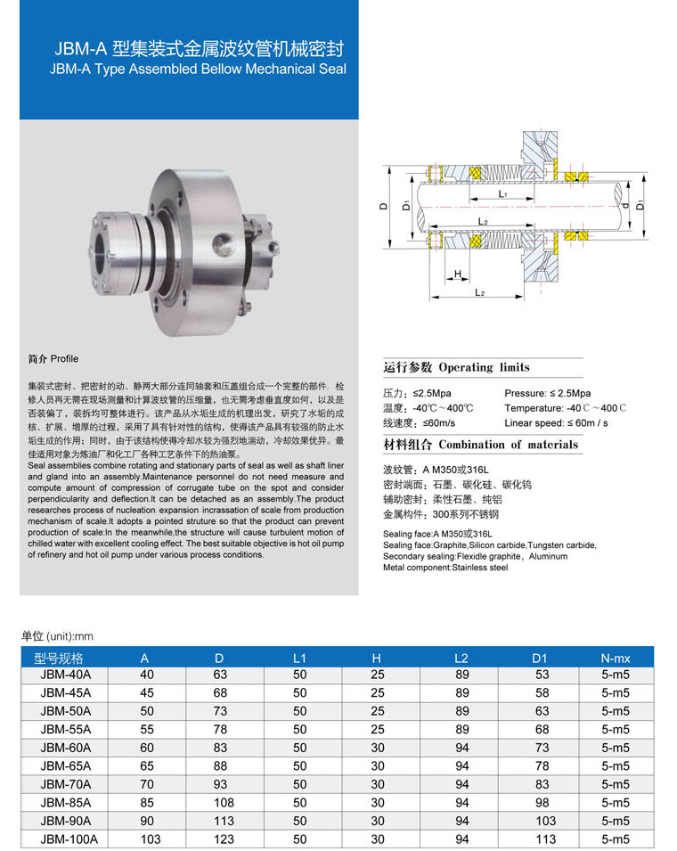• 型號:???JBM-A 型集裝式金屬波紋管機械密封