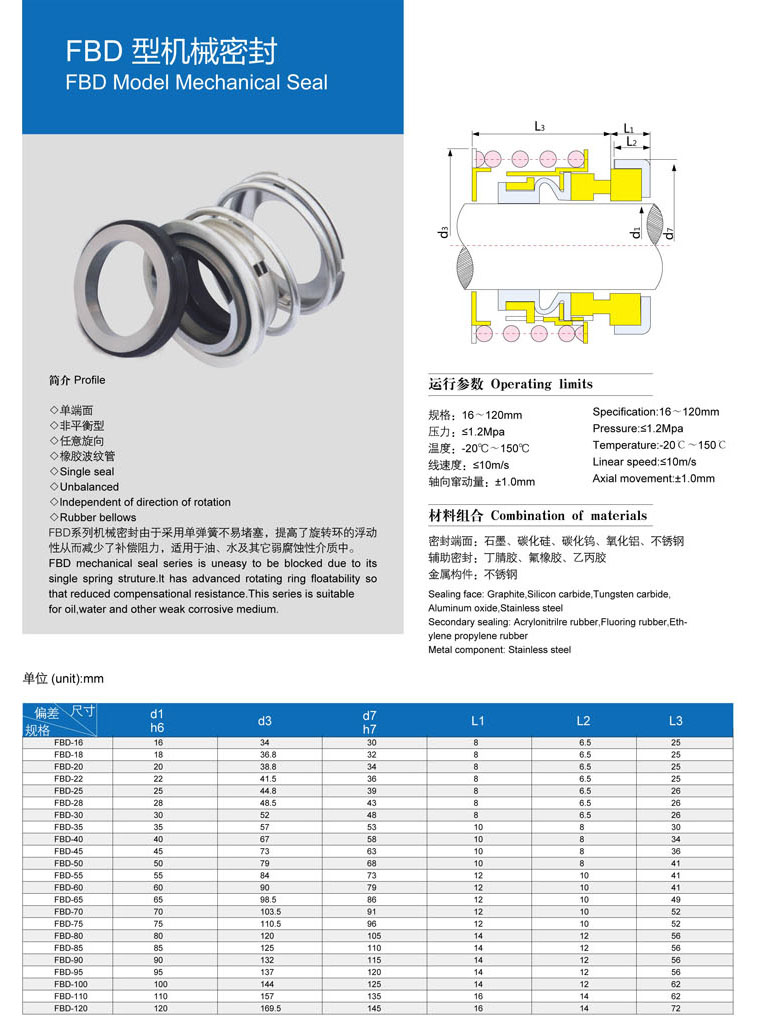 • 型號:???FBD 型機械密封