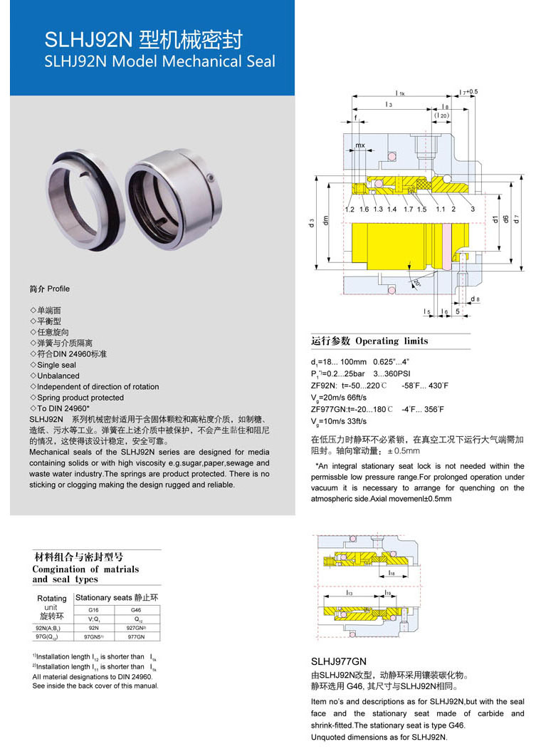 • 型號:???SLHJ92N 型機(jī)械密封