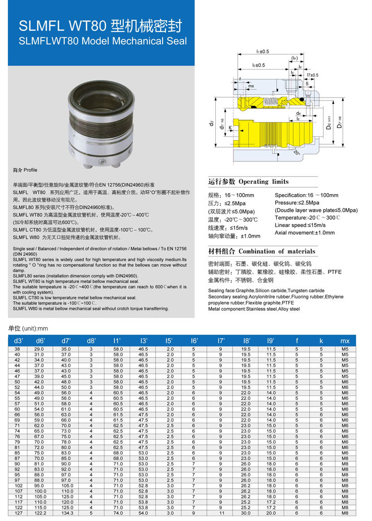• 型號:???SLMFL WT80 型機械密封