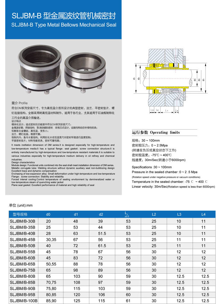 • 型號:???SLJBM-B 型金屬波紋管機械密封