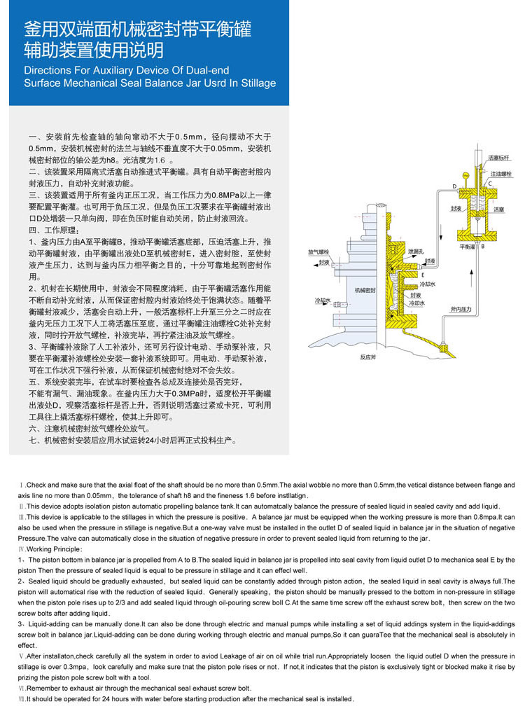 釜用雙端面械密封密封帶平衡罐輔助裝置
