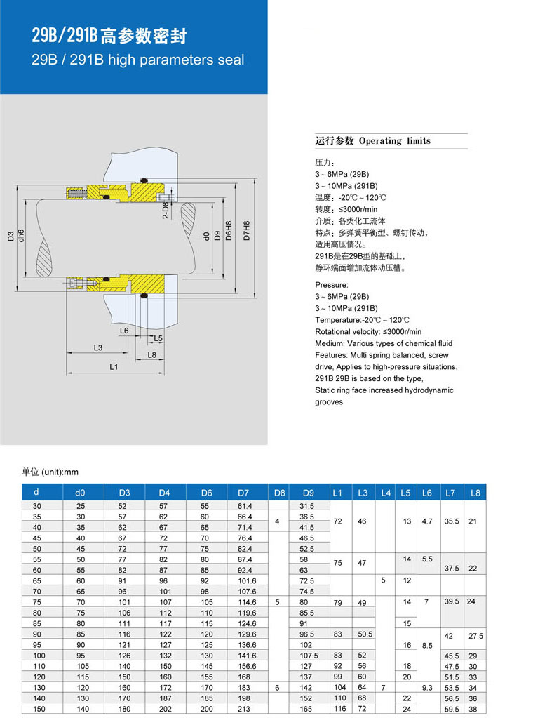 • 型號:???中型機械密封 29B/291B高參數(shù)密封