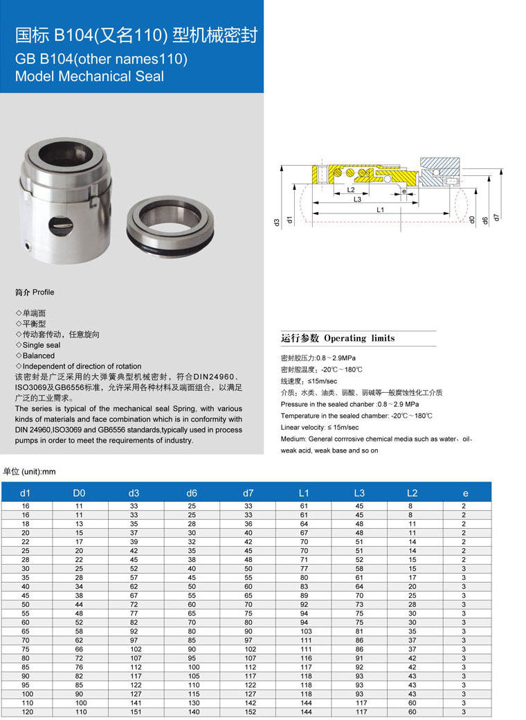 • 型號:???國標(biāo)B104(又名110)型機(jī)械密封