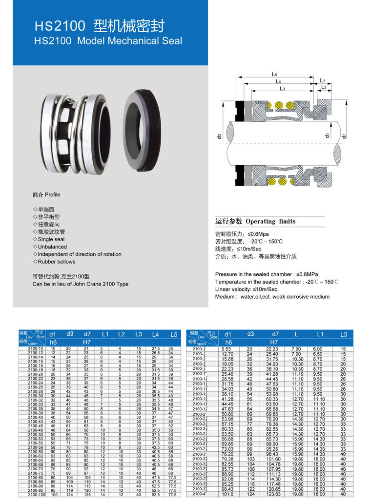 • 型號(hào):???HS2100 型機(jī)械密封