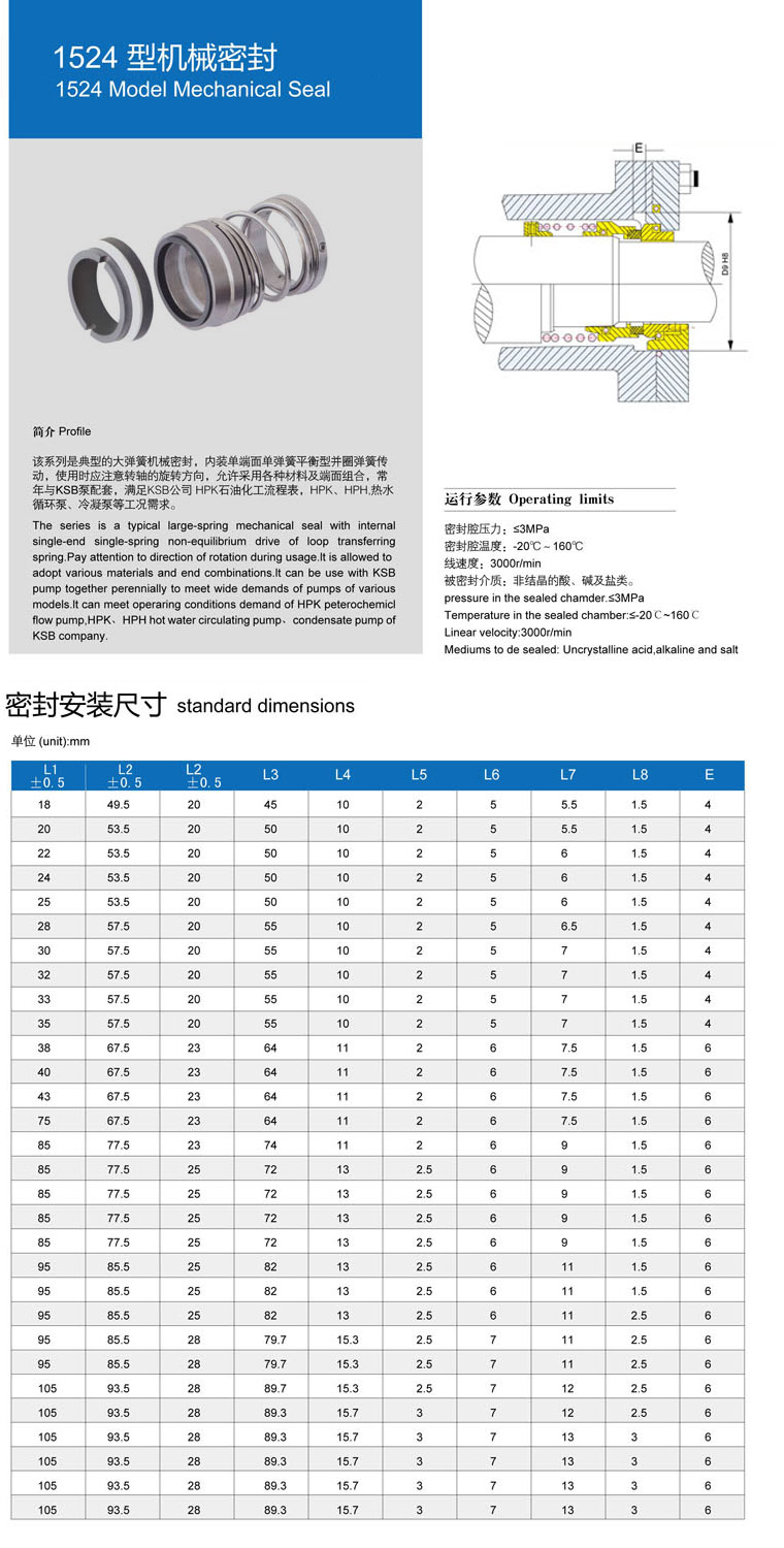 • 型號(hào):???1524型機(jī)械密封