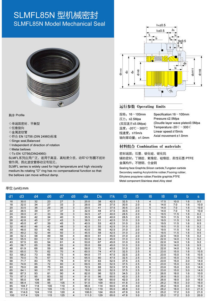 • 型號(hào):???SLMFL85N型機(jī)械密封