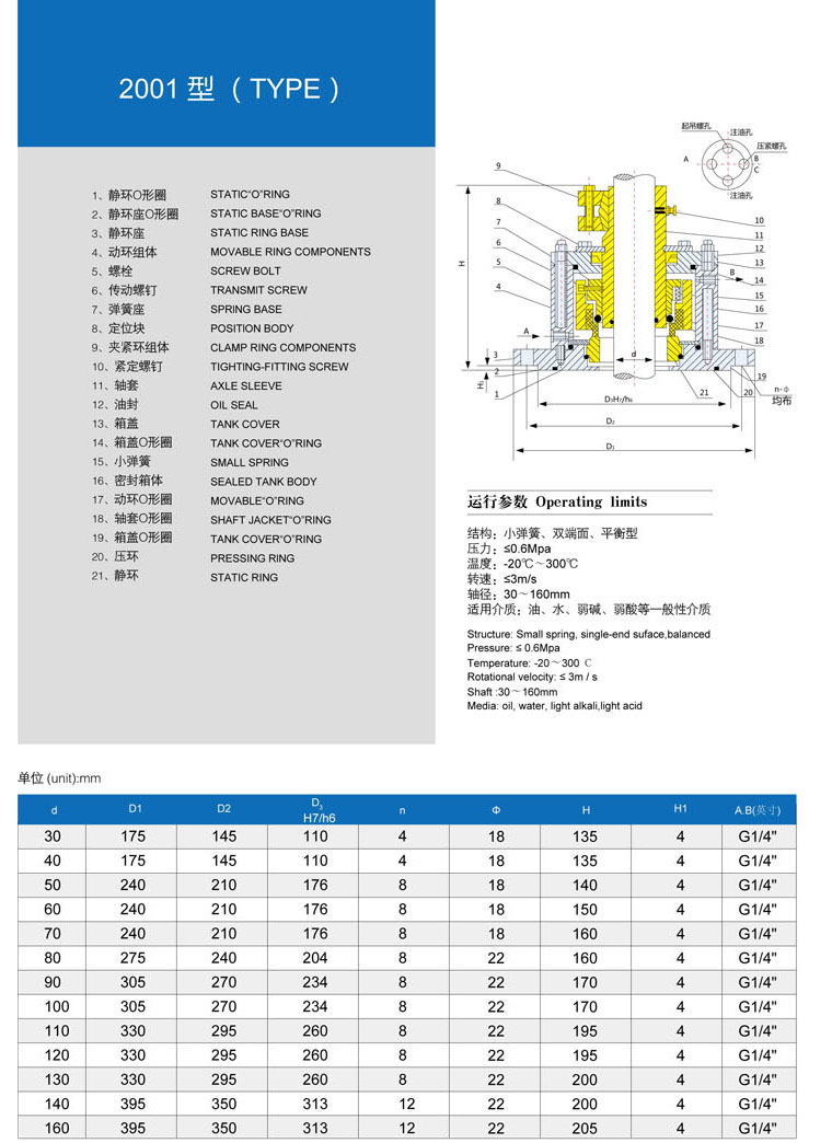 • 型號(hào):???釜用機(jī)械密封 2001型 (TYPE)