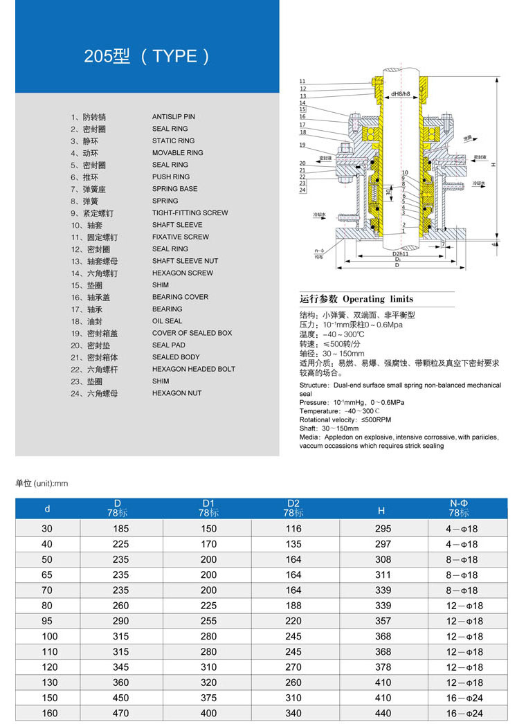 • 型號(hào):???釜用機(jī)械密封 205型 (TYPE)